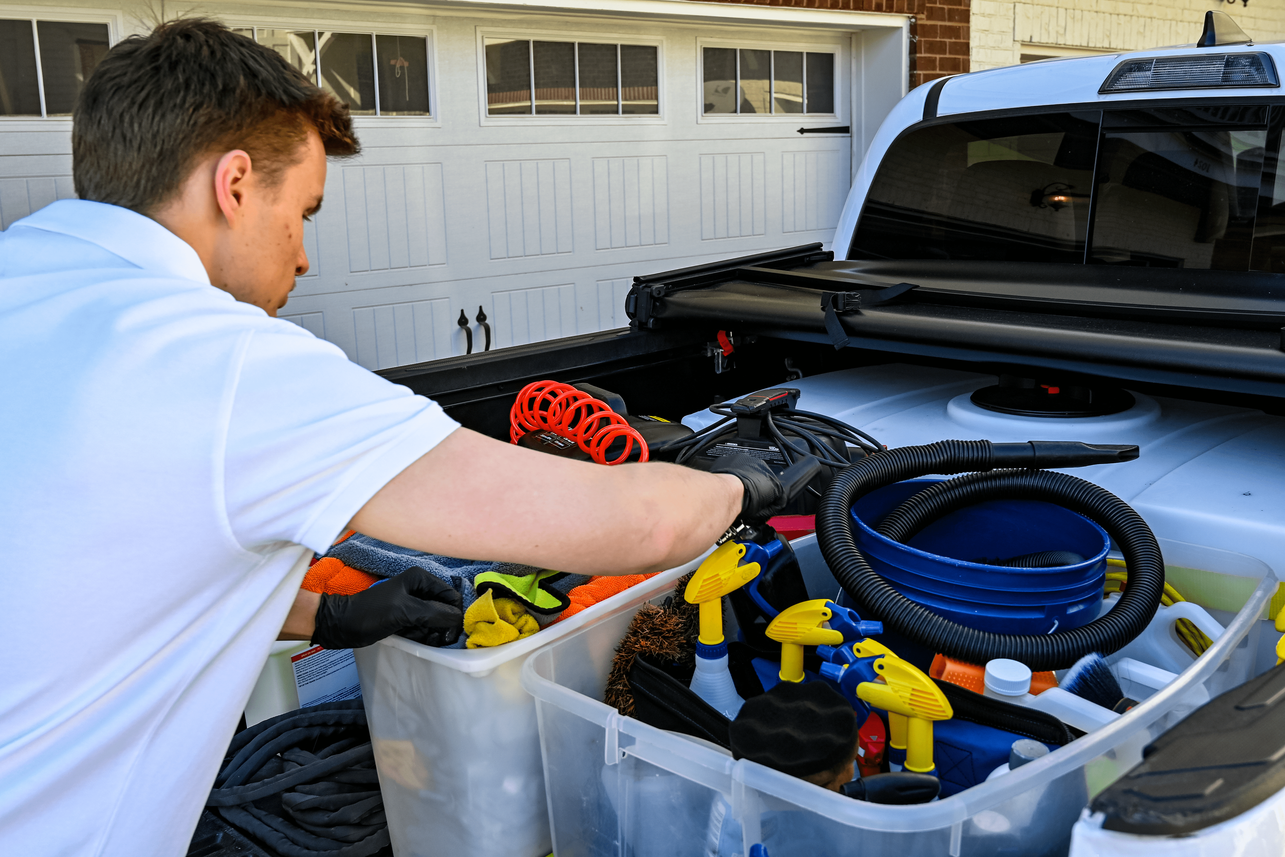 No, you don't need to provide any supplies or equipment. The only thing required of you is to point us to your home’s power and water supply, and unlock the doors to your vehicle if you’ve selected an interior detailing service. Our mobile detailing unit comes fully equipped with all the necessary tools, products, and equipment to complete the job to the highest standards.
